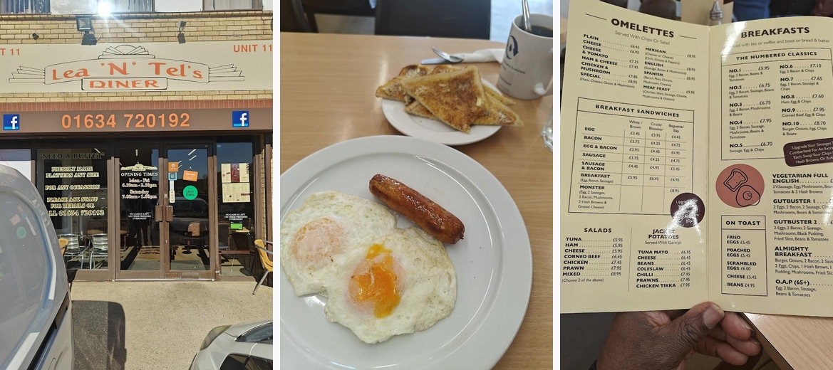 Experience delightful dining at Lea 'N' Tel's Diner Cafe in Rochester. Enjoy affordable prices and a diverse menu featuring mouthwatering sausages, crispy bacon, and our famous ham and cheese omelette. Join us for exceptional service and deliciously cooked meals that won't break the bank! Call +44 1634 720192 for more info.